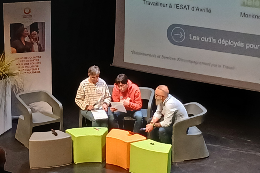 Hélène LANGLAIS, Monitrice d’atelier à l’ESAT d’Avrillé - Tom CHUPIN, Travailleur à l’ESAT d’Avrillé - Johann MADIOU, Directeur du pôle ESAT à l’Adapei 49